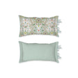 With an opulent print, there's something new to discover each time you look at this Curious Animal White Oblong Cushion 35x60 cm by PIP Studio decorative cushion. Featuring a highly stylised paisley print with tiny palm trees, ferns, and flowers in white, teal, green, red, yellow, pink, orange, brown, and black colour hues. Hidden among the foliage are small animals, including a heron, a leopard, and various birds. With a detailed geometric tile pattern on the back. The cushion has an Oxford trim, coloured cord piping along the sides, and a unique tie closure. This makes it reversible, which creates a lovely mix-and-match effect on your bed. The cushion is made of 100% percale cotton, 200 TC. Percale is a fine woven cotton of high quality. The cushion is 35 x 60 cm. The cushion can be washed at temperatures up to 60 degrees, is suitable for tumble drying, and can be ironed.