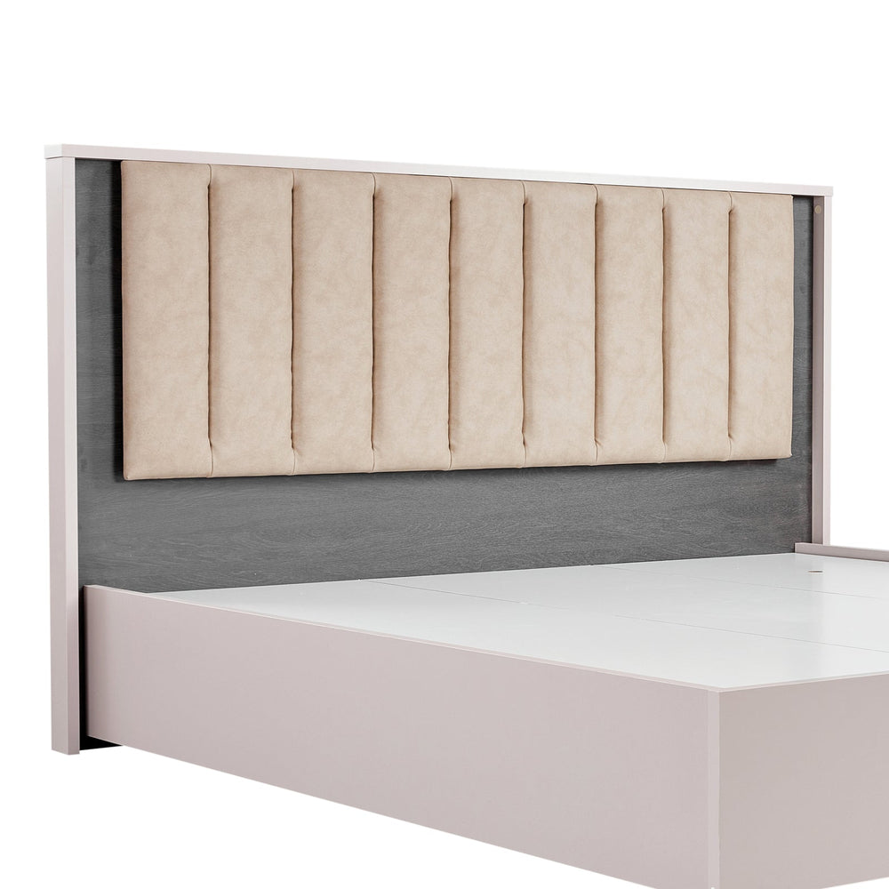 Queen 5 Pcs Bedroom Suite Fabric Upholstery MDF Combination of Champagne and Black Colour