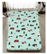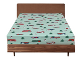 Queen Luxury 100% Cotton Flannelette Fitted Bed Sheet Flannel - Trees/Caravan