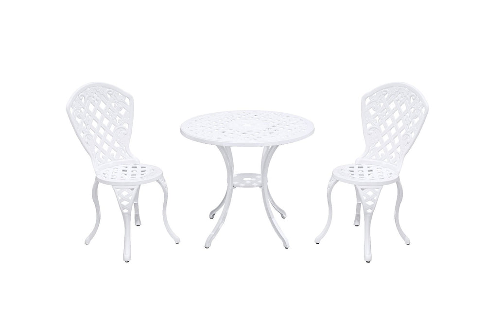 Enhance your patio, garden, or balcony with this stylish Aluminum 3-piece set. Featuring two comfortable chairs and a sleek table, this set combines contemporary design with robust construction for a perfect outdoor solution.