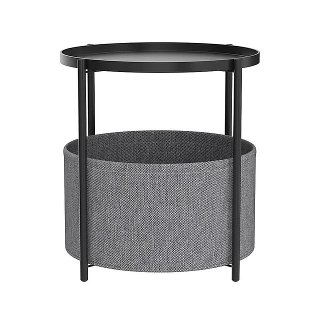 Its versatile design features a removable top tray for convenient access and a bottom fabric basket for additional storage solutions. Perfect for a variety of uses, it excels as a bedside table, keeping essentials like your phone, clock, and lamp close at hand. Alternatively, it functions beautifully as a sofa side table, ideal for snacks, drinks, and keeping items like phones, magazines, and remote controls within easy reach.