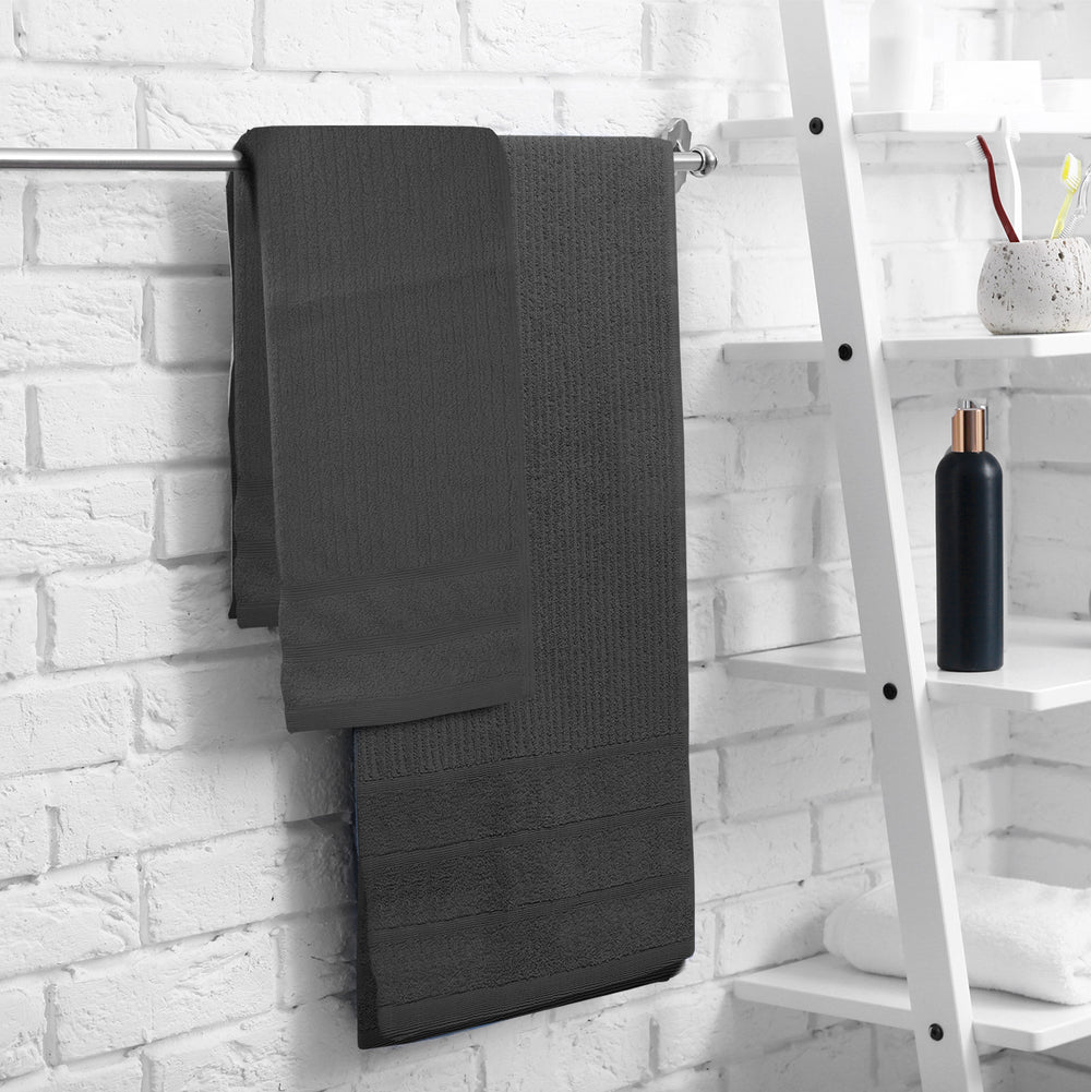- Set includes: 2 x Bath Towels (69cm x 137cm), 2 x Hand Towels (40cm x 60cm), 2 x Face Towels (33cm x 33cm), 1 x Bath Mat (50cm x 80cm), 1 x Hand Glove