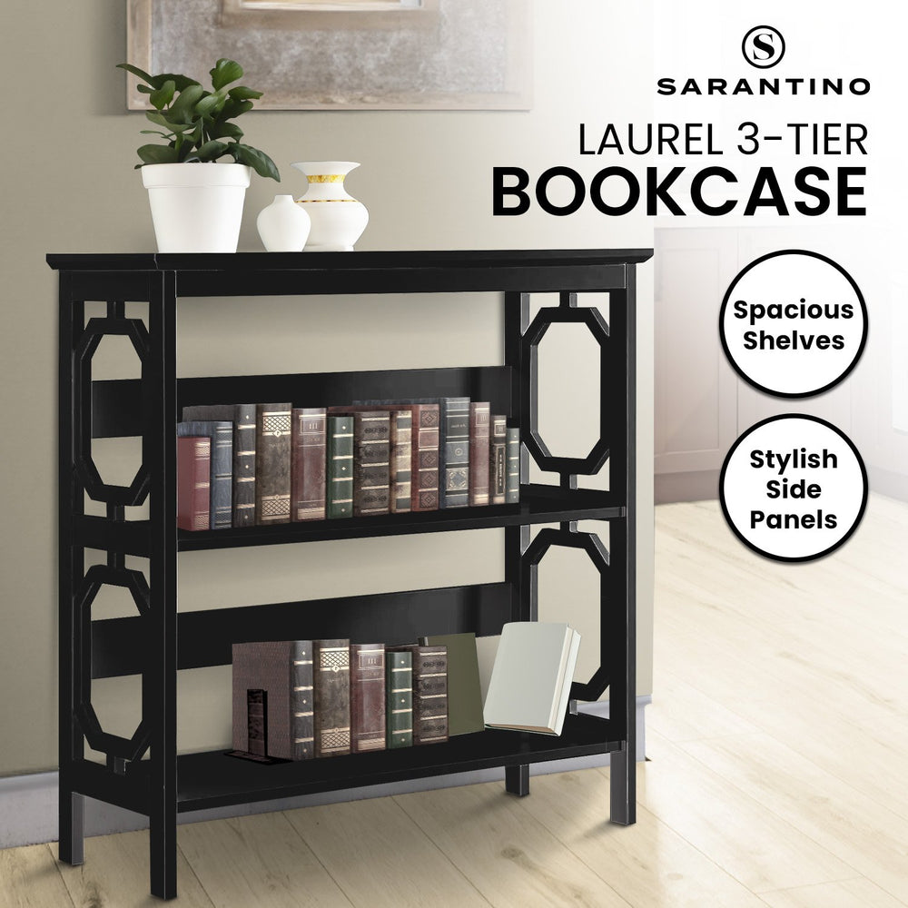 Sarantino Laurel 3-Tier Bookshelf Display Rack in Black