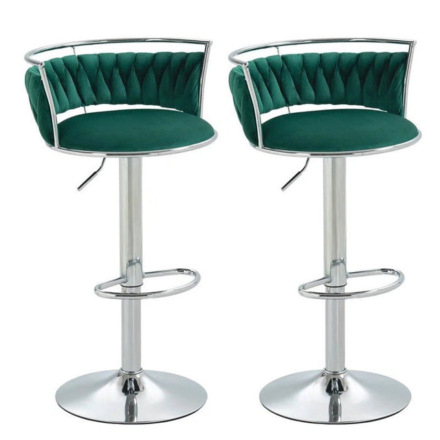 SERENITà Silver Swivel Upholstered Velvet Adjustable Height Counter Stool with Metal Frame Emerald Green (Set of 2)