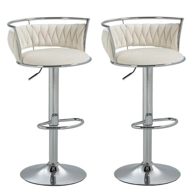 SERENITà Silver Swivel Upholstered Velvet Adjustable Height Counter Stool with Metal Frame White (Set of 2)