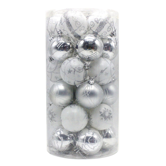 Silver 30-Piece 6cm Electroplated Christmas Baubles - Hand-Painted Tree Ornaments