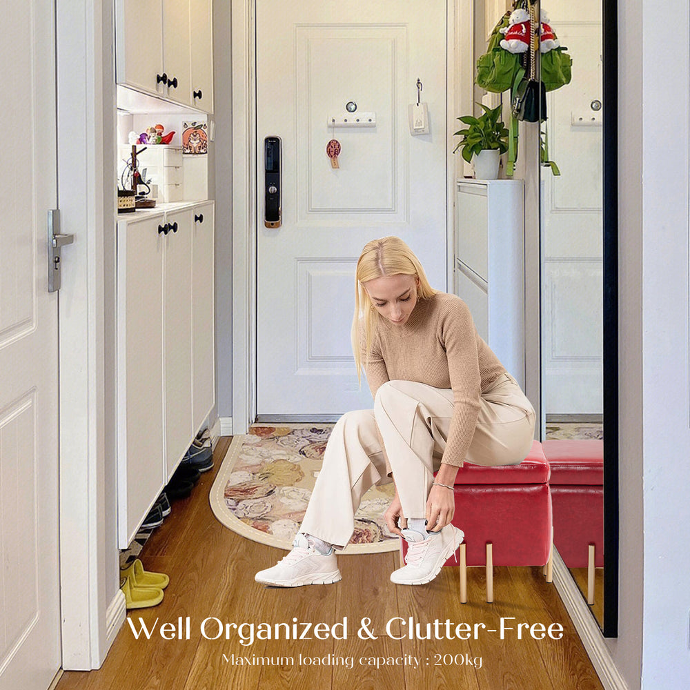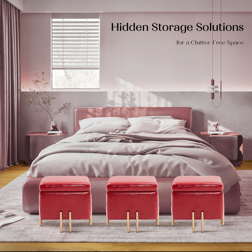 Storage Ottoman Foot Stool Cube Tuffet Seat 45cm PU Leather RED