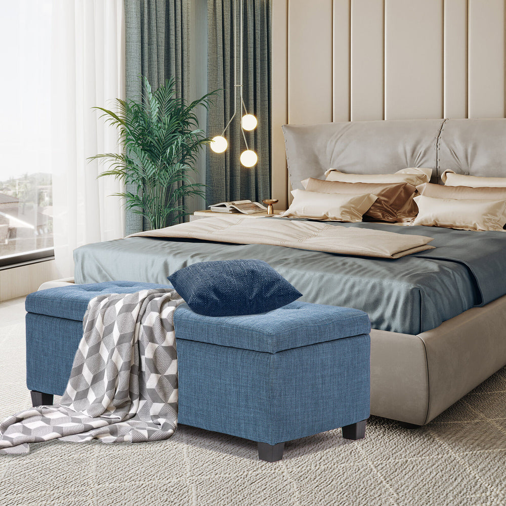 Storage Ottoman Stool 102cm Fabric DARK BLUE
