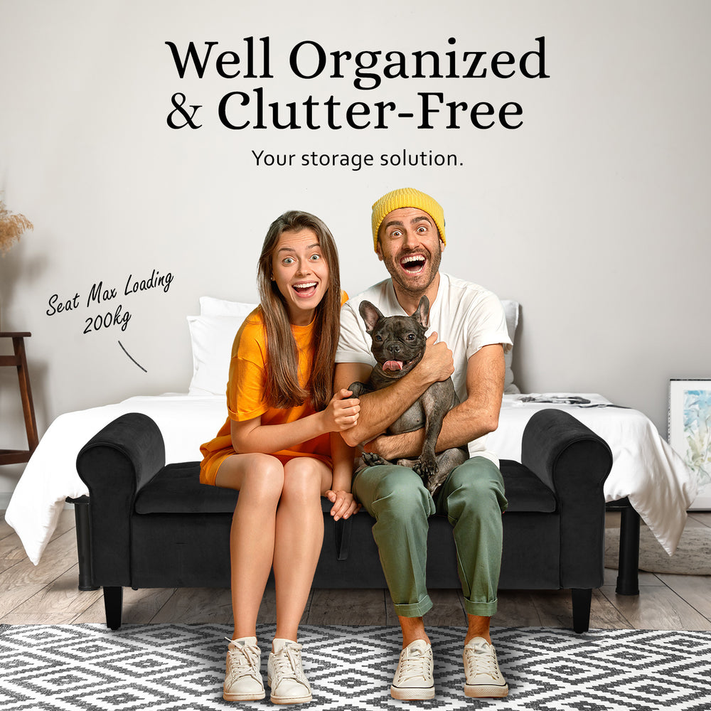 Storage Ottoman Stool Arm Bench Seat 132cm Velvet BLACK