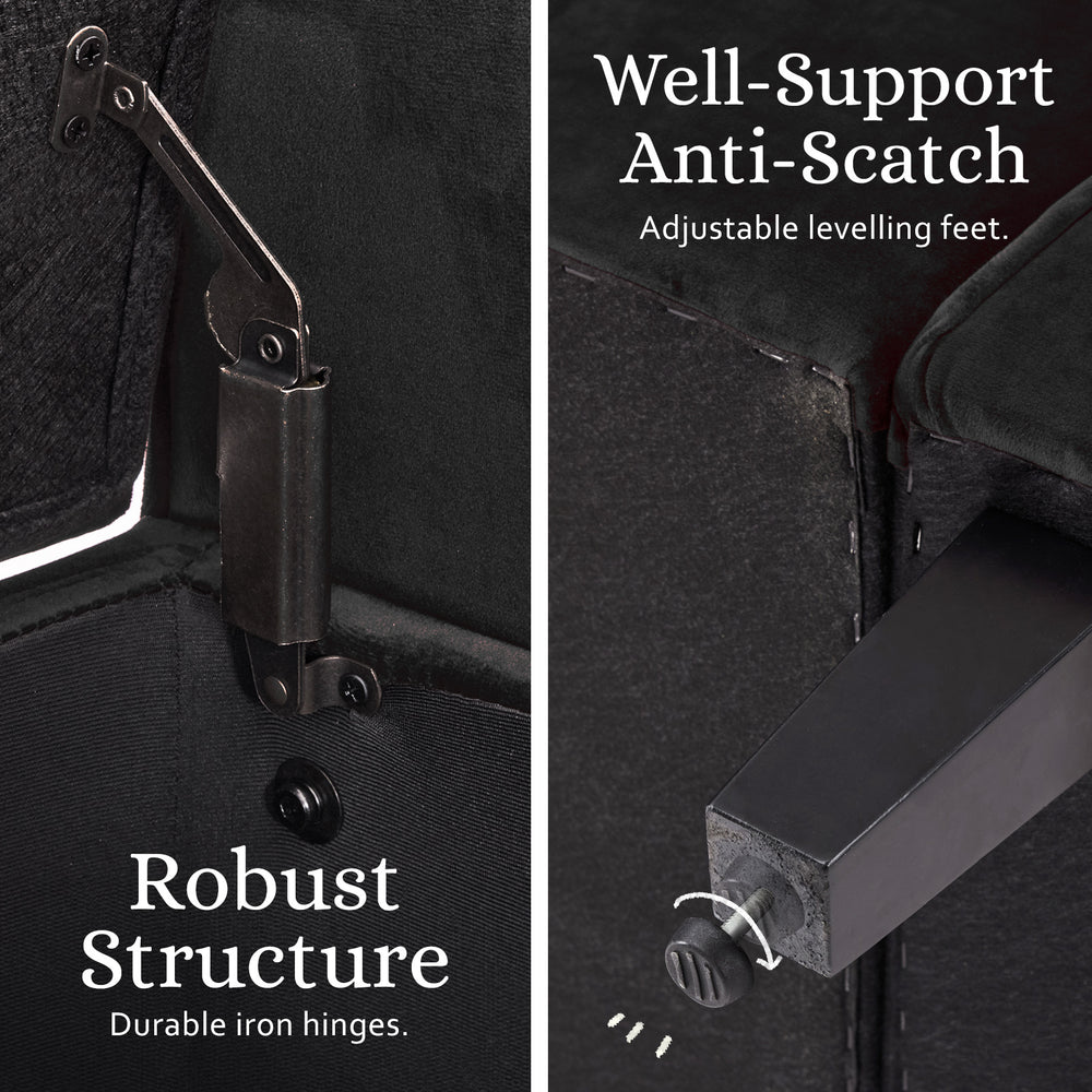 Lift the lid, and voila! You've got a roomy storage space inside - great for keeping blankets and pillows neat and tidy. Putting it together is a breeze, and the wooden legs bring a touch of warmth to the design.