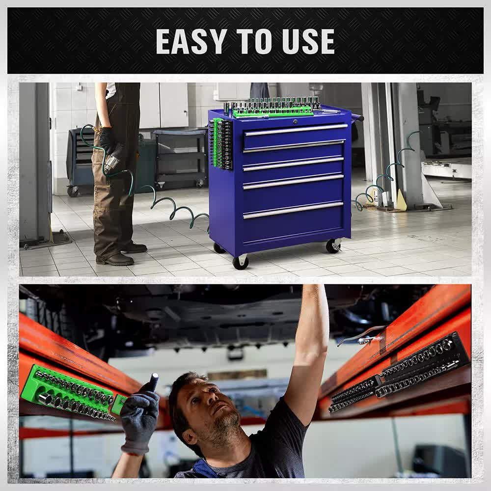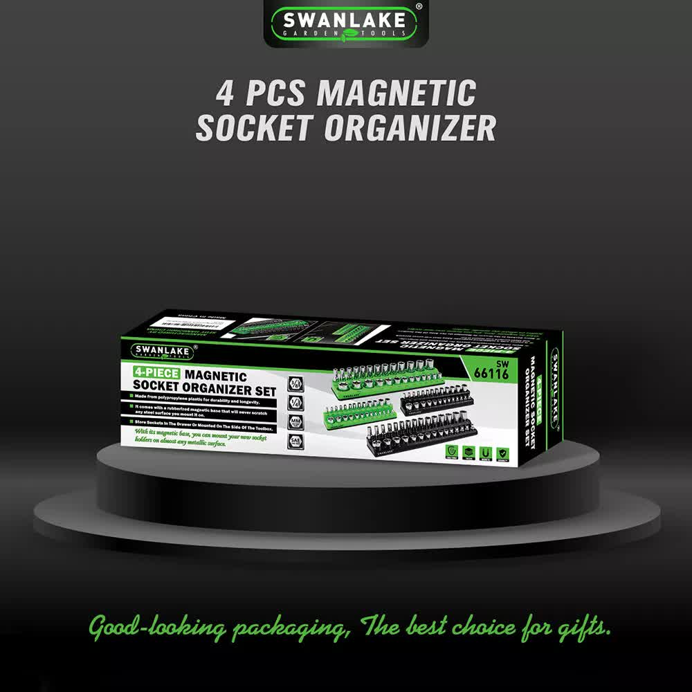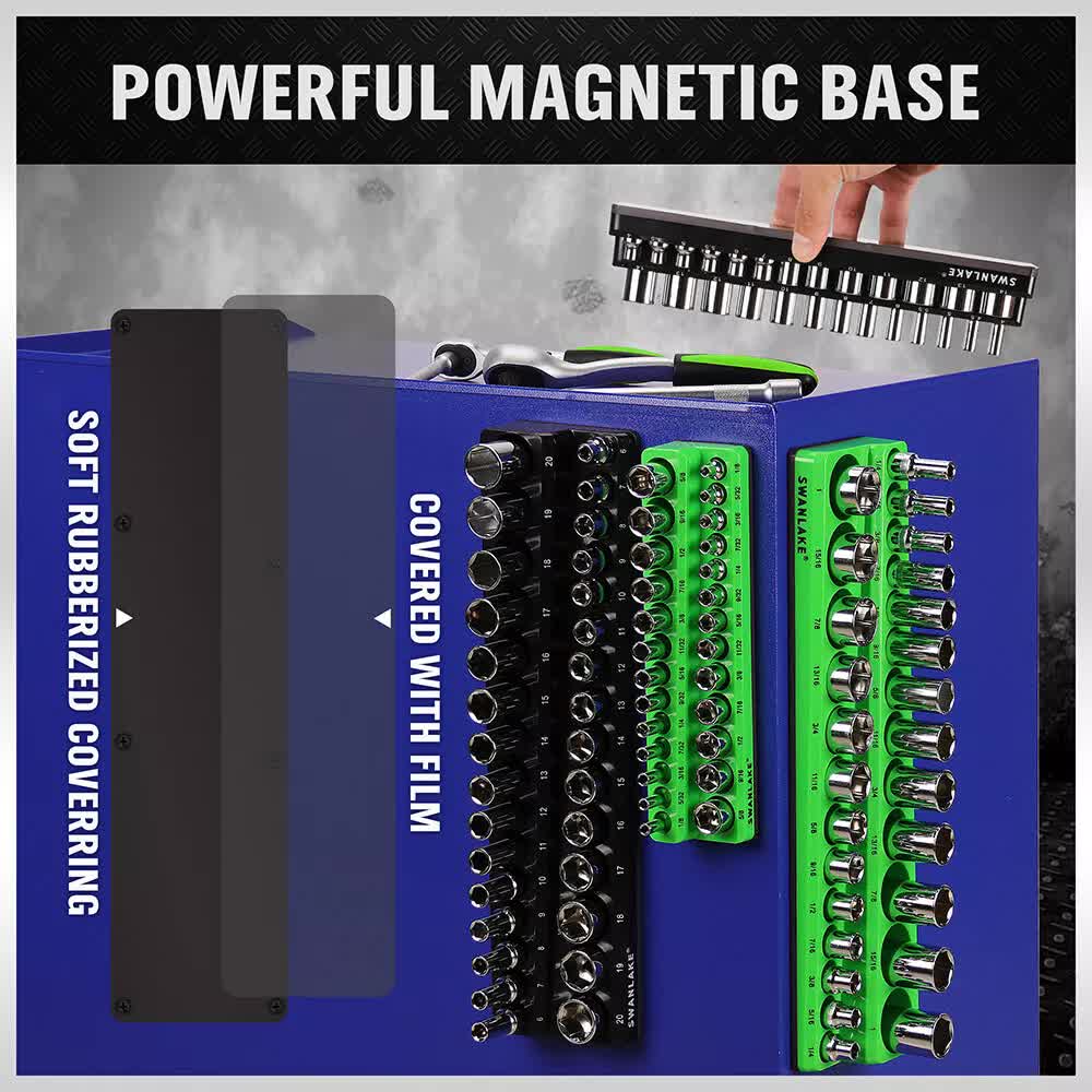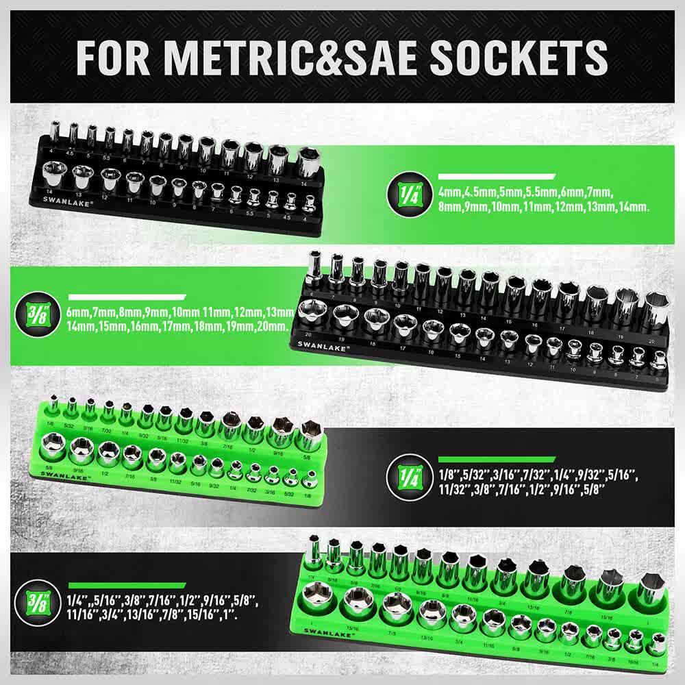 SWANLAKE 4Pc Magnetic Socket Organizer Tray 3/8" 1/4" SAE Metric Socket Holder