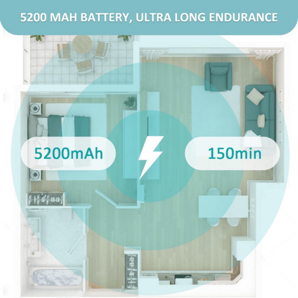 • Max 4000 Pa Suction + 5200 mAh Battery