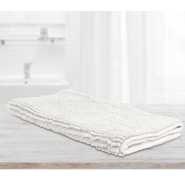 This luxurious 1600GSM Toggle Microfiber Bath Mat with Non-Slip Back White is fast drying, absorbent and features non-slip backing. It features applique design in fresh colour tone that will fit most bathroom style for a fresh new look. It is made from high quality and easy care microfiber fabric.