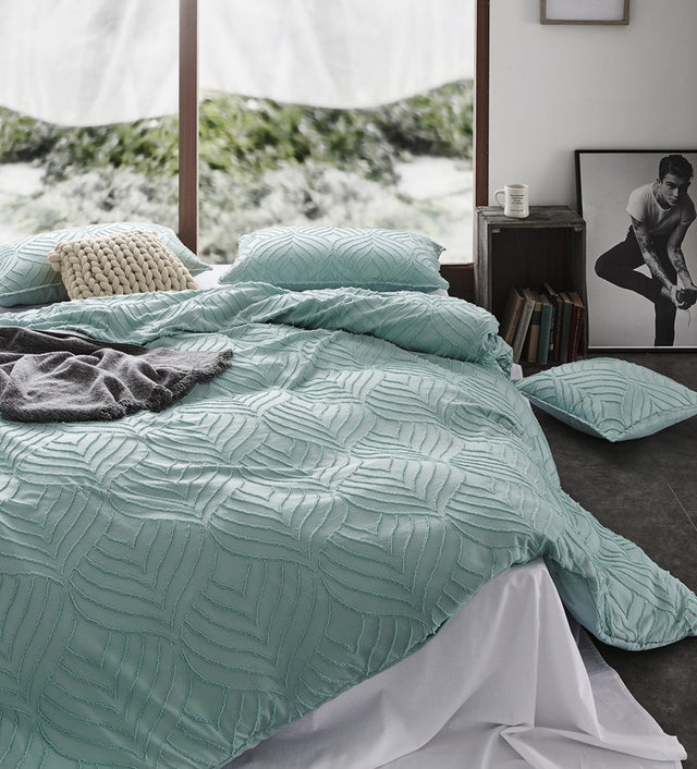 100% Premium Tufted Microfibre Quilt Cover Set - Ultra-Soft, Durable Embroidery Bedding Comforter Set - Machine Washable & Zipper Closure - Sage Green - King
