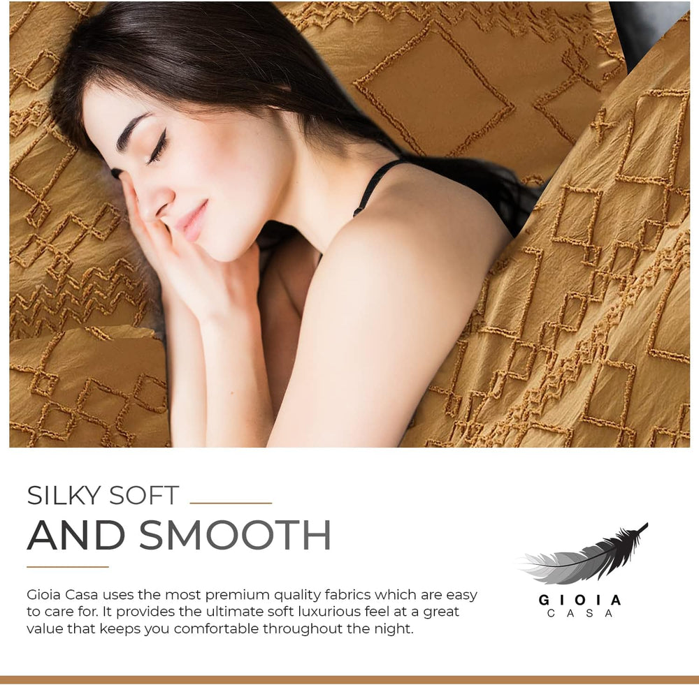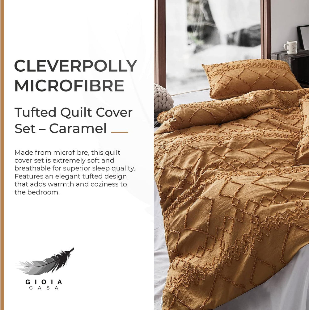 100% Premium Tufted Microfibre Quilt Cover Set - Ultra-Soft, Durable Embroidery Bedding Comforter Set - Machine Washable & Zipper Closure - Caramel - Super King