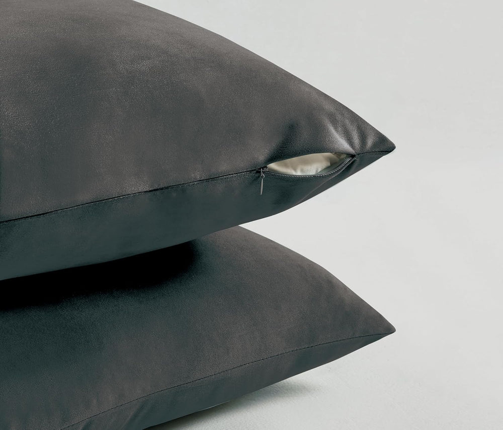 Twin-Pack Velvet Cushion Covers - Soft Microfibre Cushion Covers with Hidden Zipper (Dark Grey, 45cm*45cm)