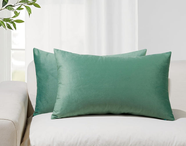 Twin-Pack Velvet Cushion Covers - Soft Microfibre Cushion Covers with Hidden Zipper (Sage, 30cm*50cm)