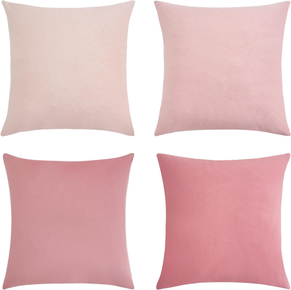 Velvet Cushion Covers - Ultra Soft Microfibre Velvet with Hidden Zipper - Gradient Pink, 45cm*45cm (Pack of 4)