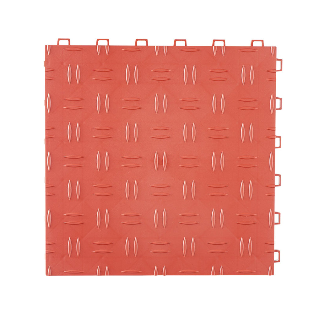VEVOR Garage Tiles Interlocking, 12 x 12 x 0.53 inch 25 Pack Garage Floor Covering Tiles, Non-Slip Double-Sided Texture Garage Flooring Tiles, for Garages, Basements, Repair Shops, Red is backordered and will ship as soon as it is back in stock.