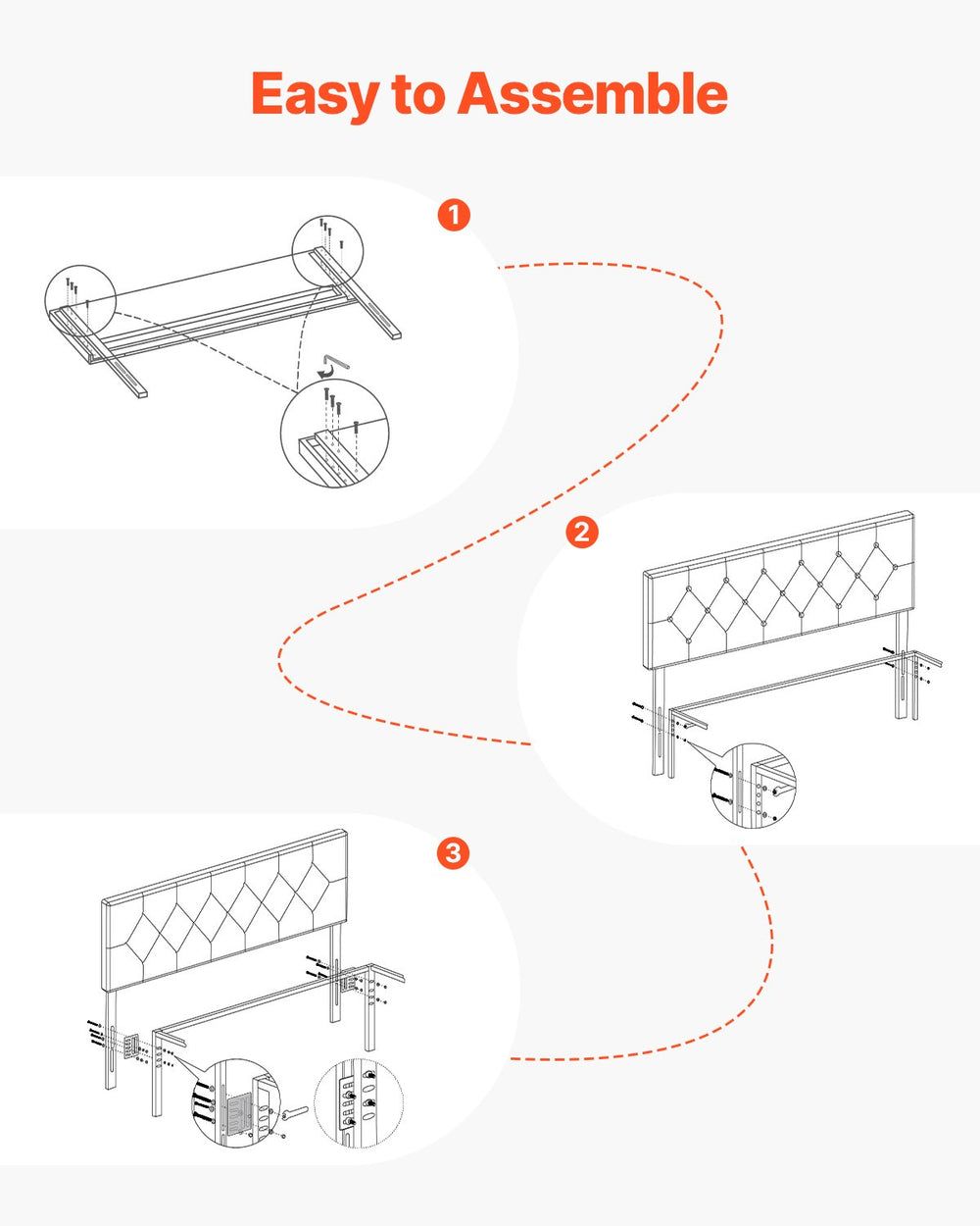 The installation kit includes everything you need. Simply attach the legs to the headboard and mount it to your bed frame, and you'll be ready to enjoy a more comfortable, stylish bedroom in no time.