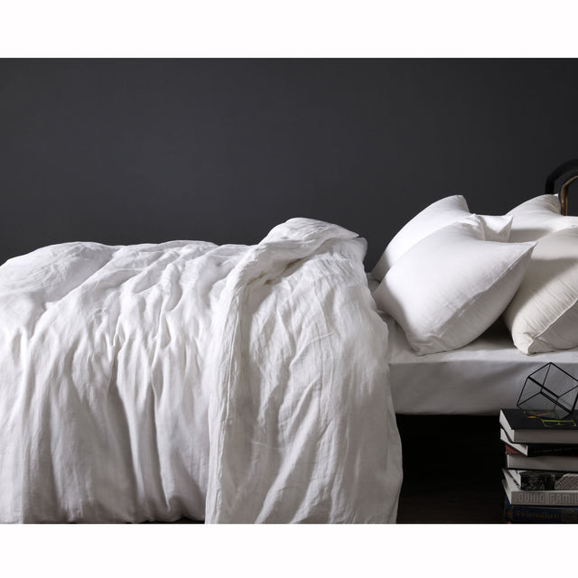 Make a dramatic change to your bedding look with this stunning 100% Linen White Quilt Cover Set by Vintage Design Homewares that gives your bedroom a fresh new aura. It features a simple yet elegant solid colour design that fits perfectly to your existing bedroom décor. Made from comfortable and natural 100% Linen fabric that provides durability and minimises wrinkling.