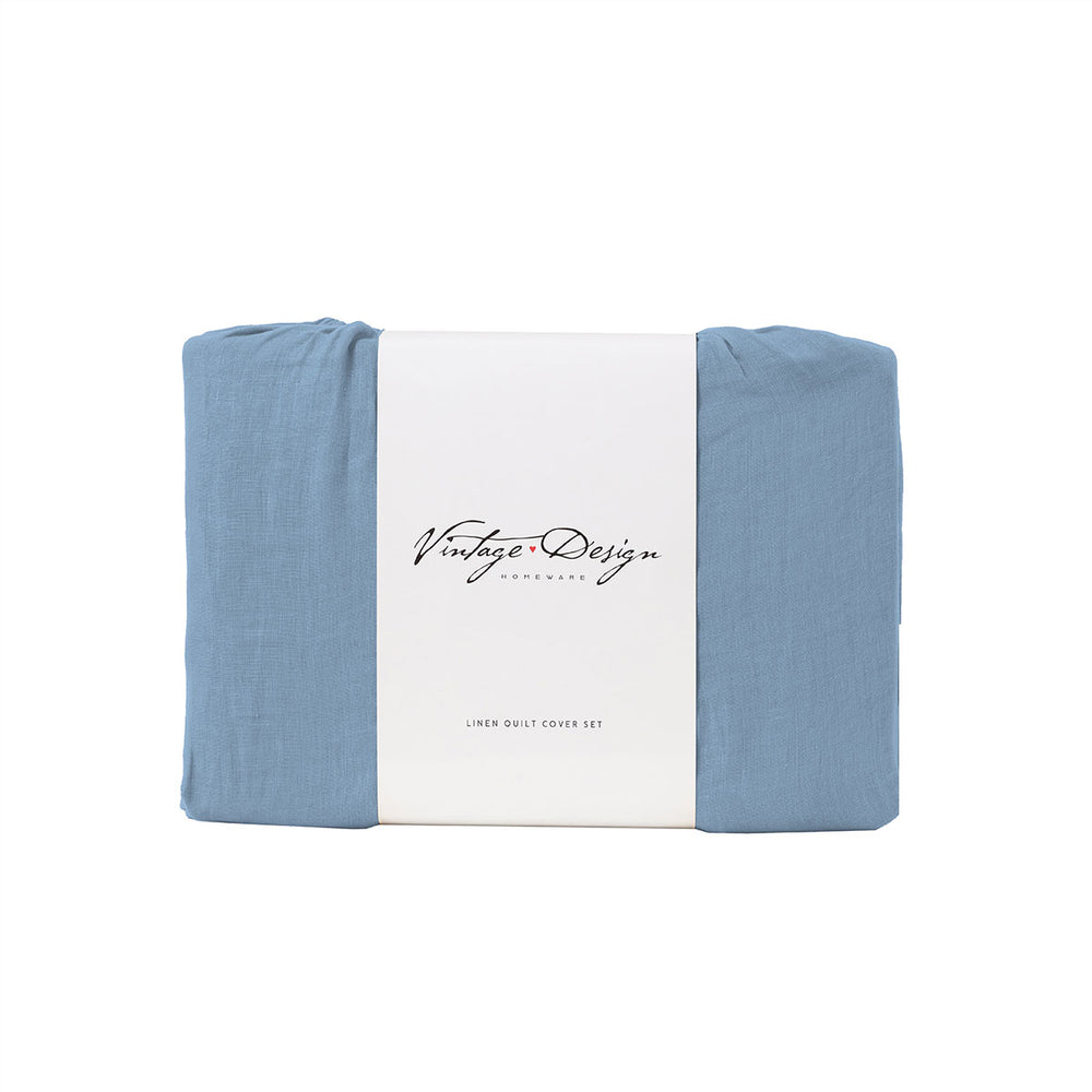 Vintage Design Homewares Denim Blue French Linen Quilt Cover Set King
