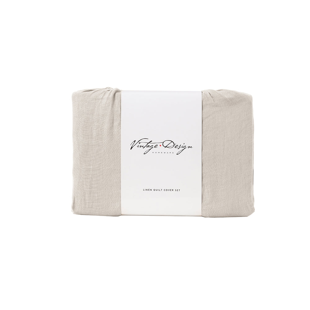 Vintage Design Homewares Natural French Linen Quilt Cover Set Double