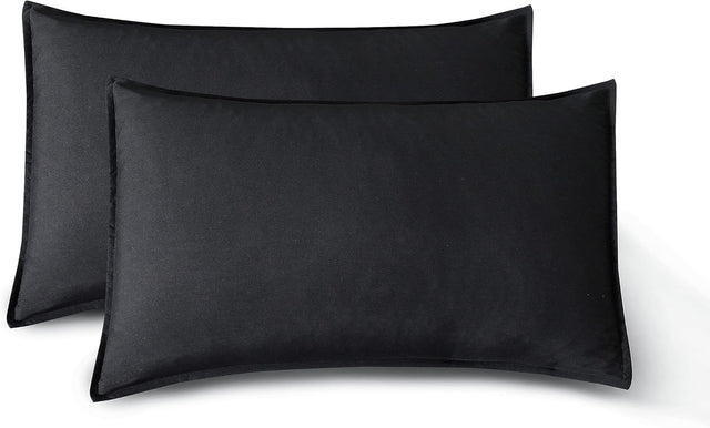 Vintage Washed Microfibre Standard Pillowcases - Set of 2 Luxurious Standard Pillow Covers - Black