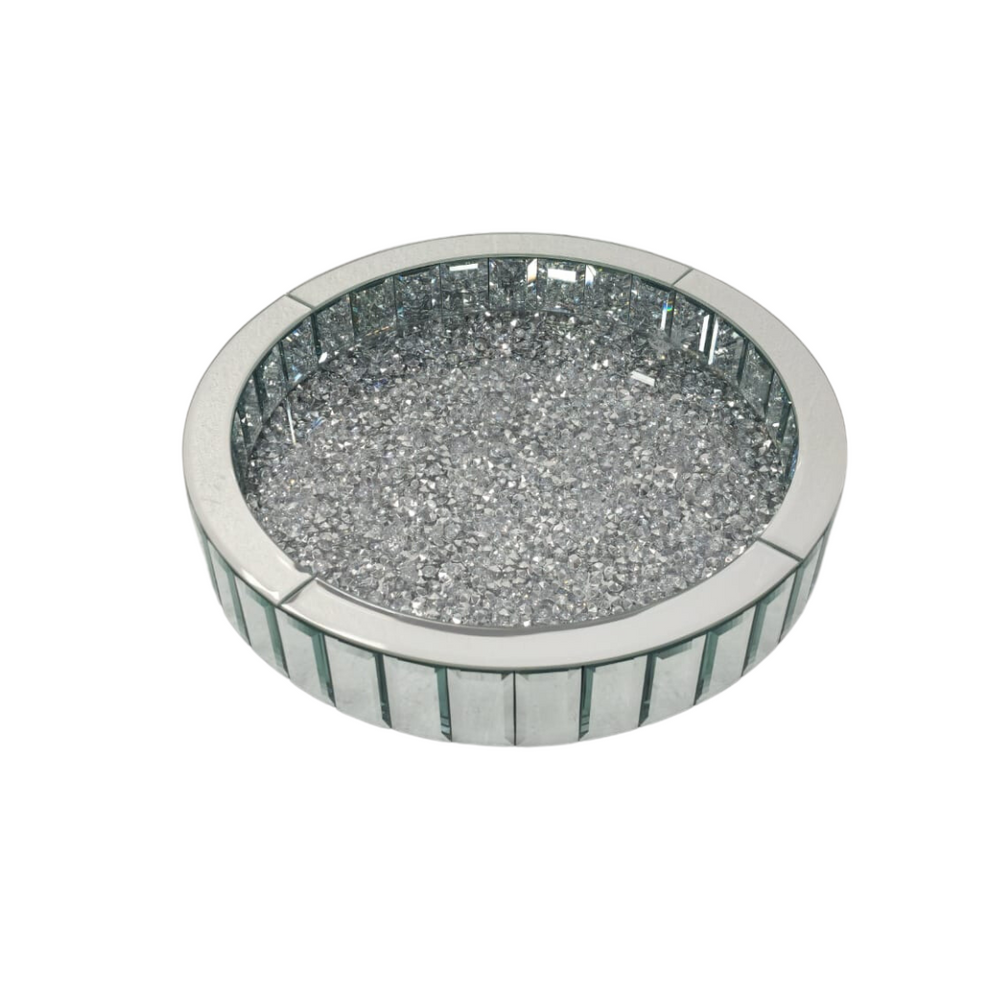 Introducing the Vogue Diamond Tray, a luxurious and sophisticated home decor item that will elevate the ambiance of any room. This exquisite tray is a true statement piece, designed with a bevelled mirror and adorned with diamonds, adding a touch of elegance and glamour to your living space.