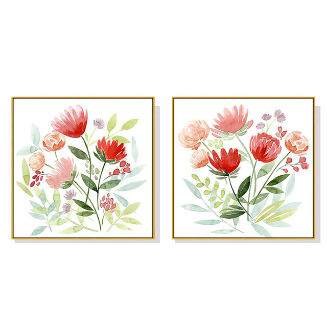 Wall Art 60cmx60cm Florals 2 Sets Gold Frame Canvas