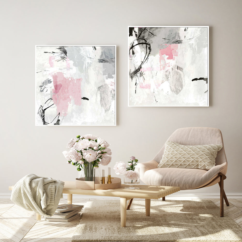 Wall Art 90cmx90cm Abstract Pink Grey 2 Sets White Frame Canvas