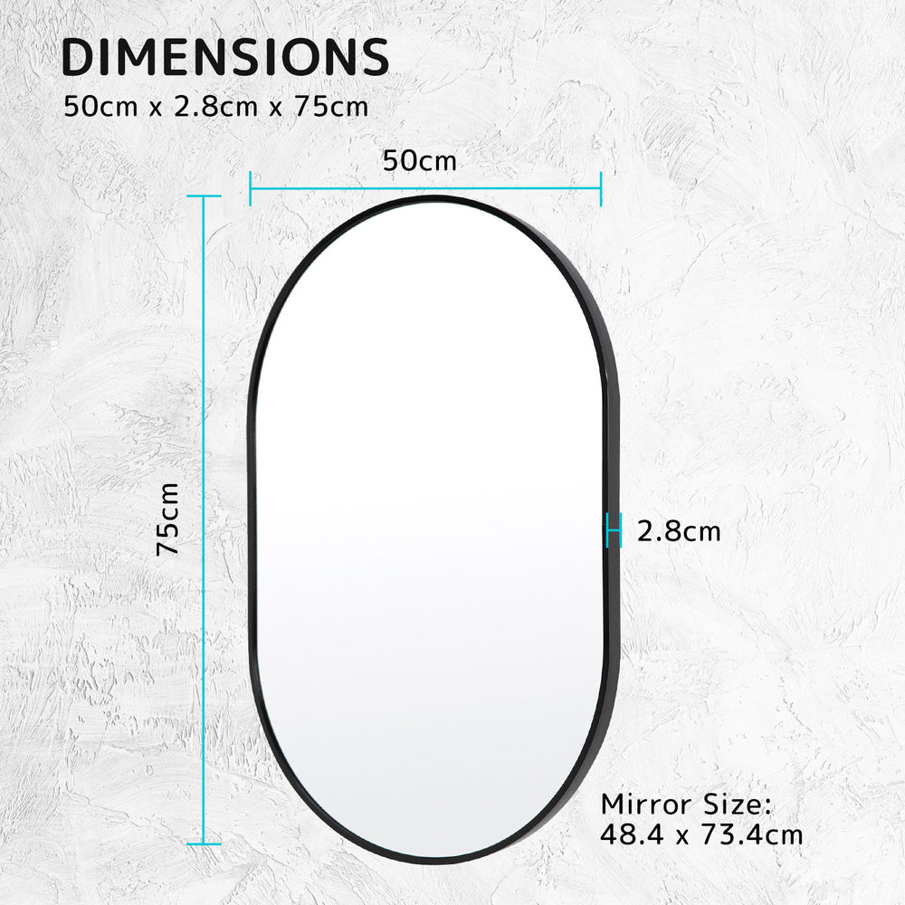 Wall Mirror Oval Aluminum Frame Bathroom 50x75cm BLACK