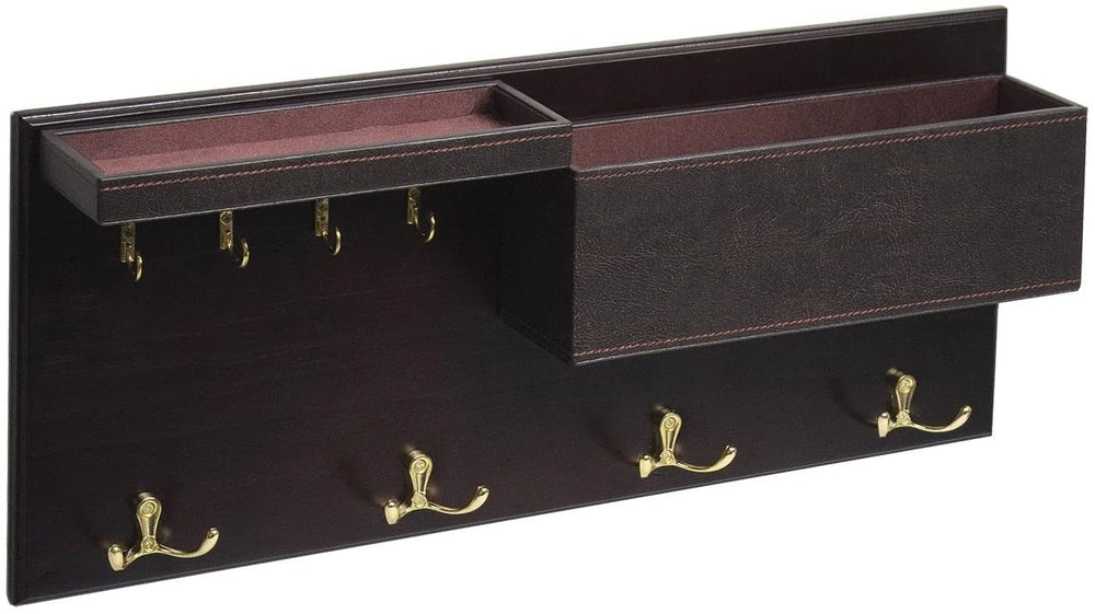 Wood Entryway Coat Rack with 2 Leather Tray(Brown)