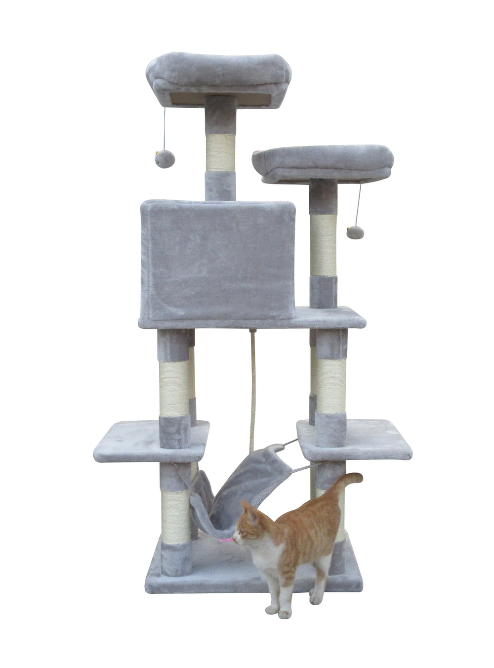 Our latest cat tree is the ultimate home for your cat. It combines scratching, perching, chasing, climbing and just plain fun all in one piece. The multiple platforms allow your cats to jump around, and the plush carpeted surface provides extra comfort.