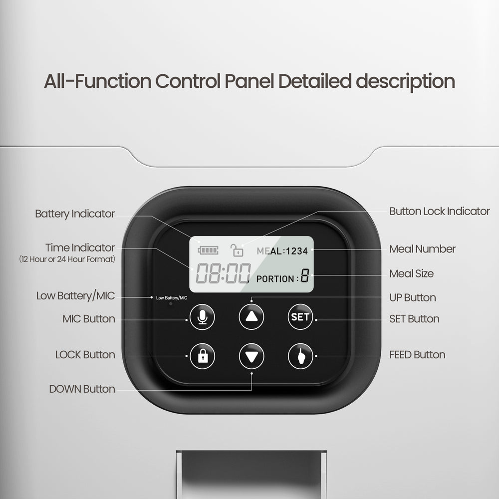 Never let your pets skip a meal with the programmable pet food dispenser. This pet feeder allows you to set meal times for your pets. Allowing you to program the time/s when the food will dispense up to 4 times a day in order to feed your pets. Rest easy at home or work so that your pets are being fed on time with the programmable pet food dispenser.