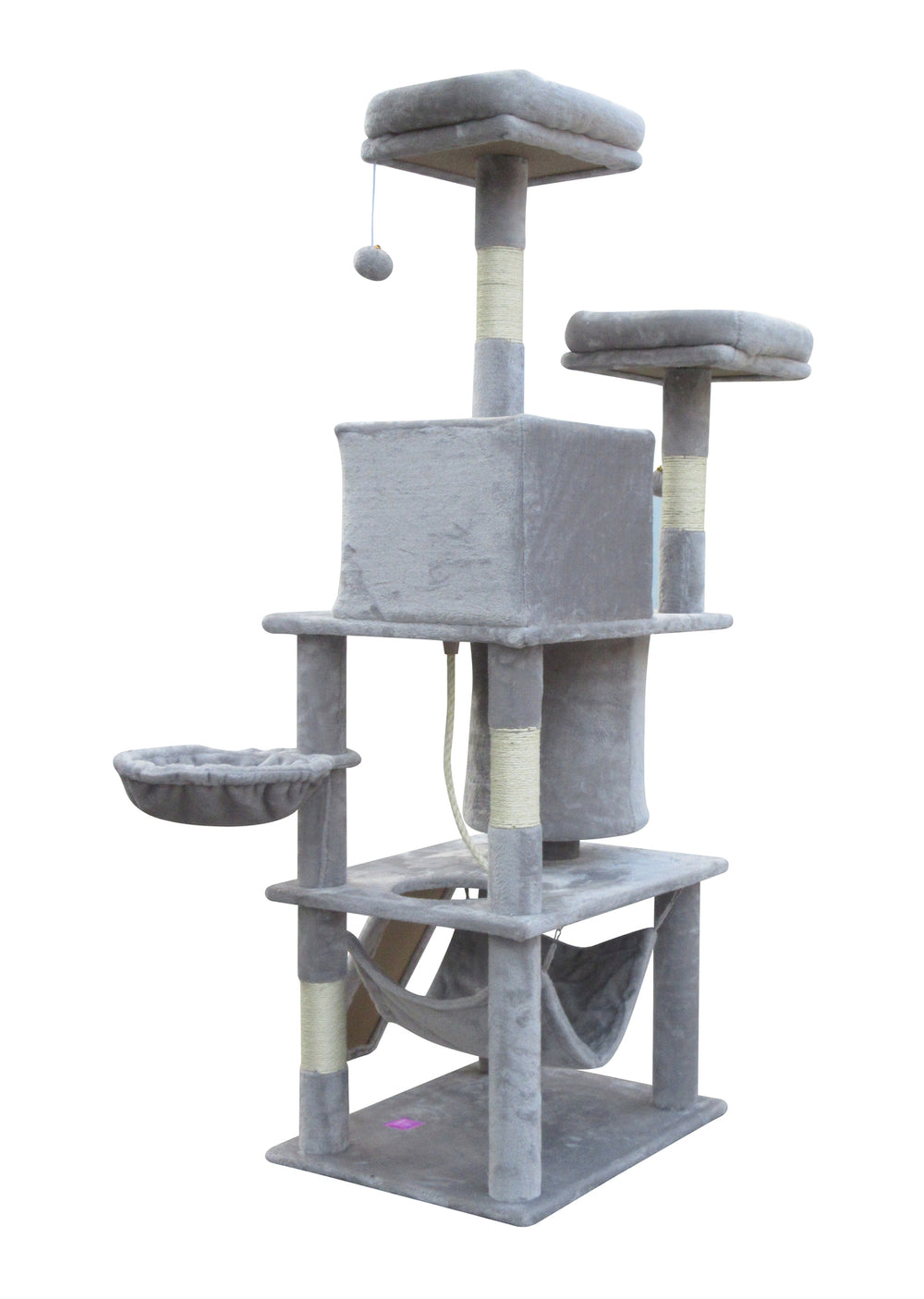 Our latest cat tree is the ultimate home for your cat. It combines scratching, perching, chasing, climbing and just plain fun all in one piece. The multiple platforms allow your cats to jump around, and the plush carpeted surface provides extra comfort.