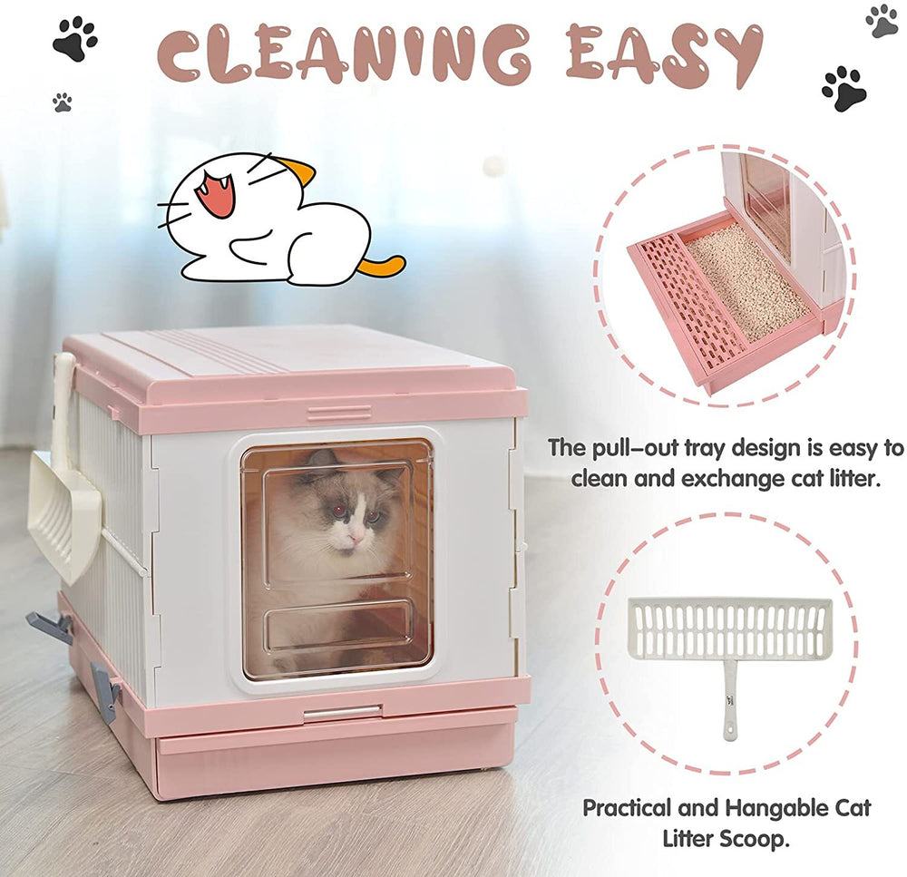 XL Portable Cat Toilet Litter Box Tray Foldable House with Handle and Scoop-Pink