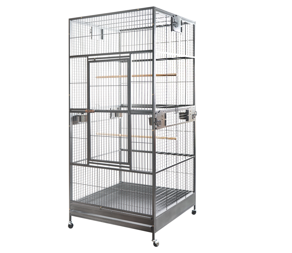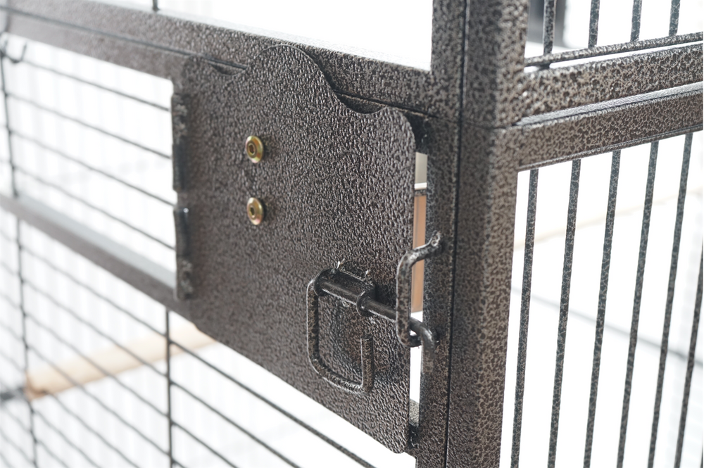 Taking care of them is made easy too with one large access door and four side doors to reach inside four food and water bowls and take them out for refills or cleaning. Cleaning is hassle-free with the slide-out top and bottom tray that can also be removed. And your feather friends will feel extremely safe too with a set of secured locks to keep prying predators away.